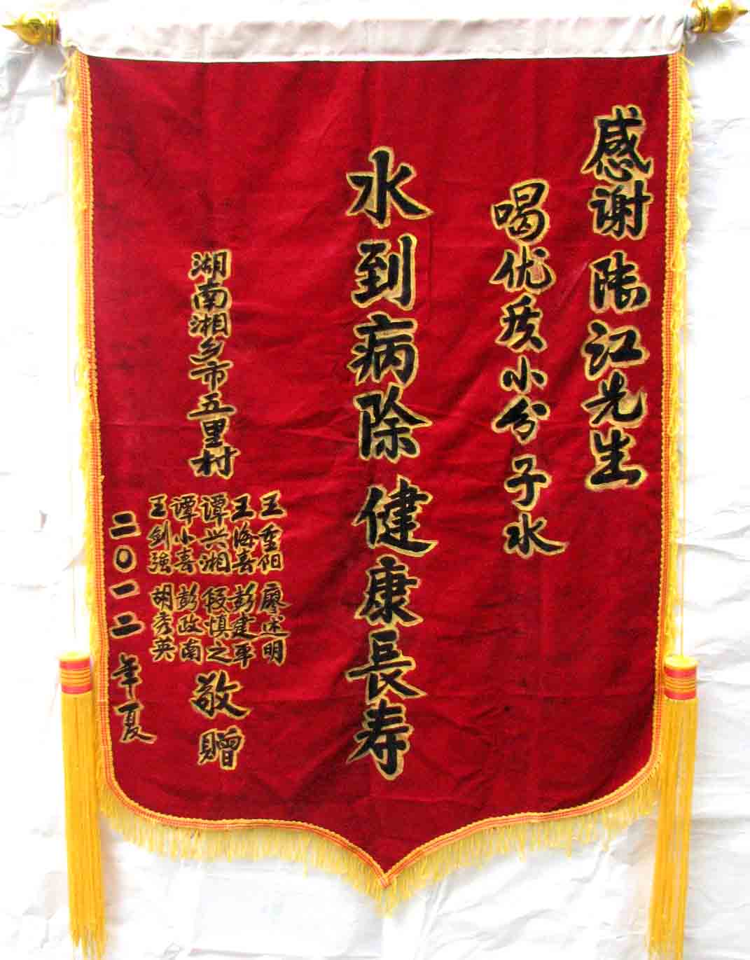 2015年潘志山主動(dòng)寫一篇感想《我以親身實(shí)踐打破了冠心病、高血壓、糖尿病需終生服藥的神話》說堅(jiān)持按發(fā)明人陸?江先生倡導(dǎo)的用已饑方食的方法合理膳食,我的健康狀況越來越好:糖尿病造成的視力下降有了明顯的恢復(fù),末梢神經(jīng)炎導(dǎo)致的指端潰爛現(xiàn)在完全痊愈,痔瘡自從飲用微小分子團(tuán)水半年后就再也沒有復(fù)發(fā)過,氣滯血瘀造成的嘴唇暗紫也漸漸變得紅潤(rùn),舌下靜脈黑紫消失,足背的動(dòng)脈由以前的隱約感到跳動(dòng)現(xiàn)在變得清晰有力。[13]潘先生披露的訣竅,一是飲用微小分子團(tuán)水給脫水細(xì)胞補(bǔ)水,二是已饑方食”養(yǎng)生智慧,患者都能做到。